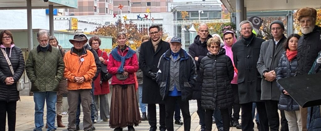 Am 9. November 2025 trafen sich am Glaskubus im Schwalbacher Limeszentrum rund 100 Menschen zu einer „Mahnwache“, um der Opfer des Faschismus in Deutschland in der Pog-romnacht vom 9. auf den 10. November 1938 und später sowie aller sonstigen Opfer von Ras-sismus und Gewalt zu gedenken. SA, SS und viele „Menschen von nebenan“ trugen damals dazu bei, dass alle Synagogen in Schutt und Asche gelegt wurden, Geschäfte zerstört und geplündert und jüdische Mitbürger gedemütigt, verschleppt und vielfach auch getötet wurden.