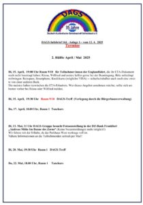 DAGS-Fahrt nach Berlin im Juni 2023 Die Fahrt war mit 25 Teilnehmer*innen sehr schnell ausgebucht. Für den Fall, dass jemand…